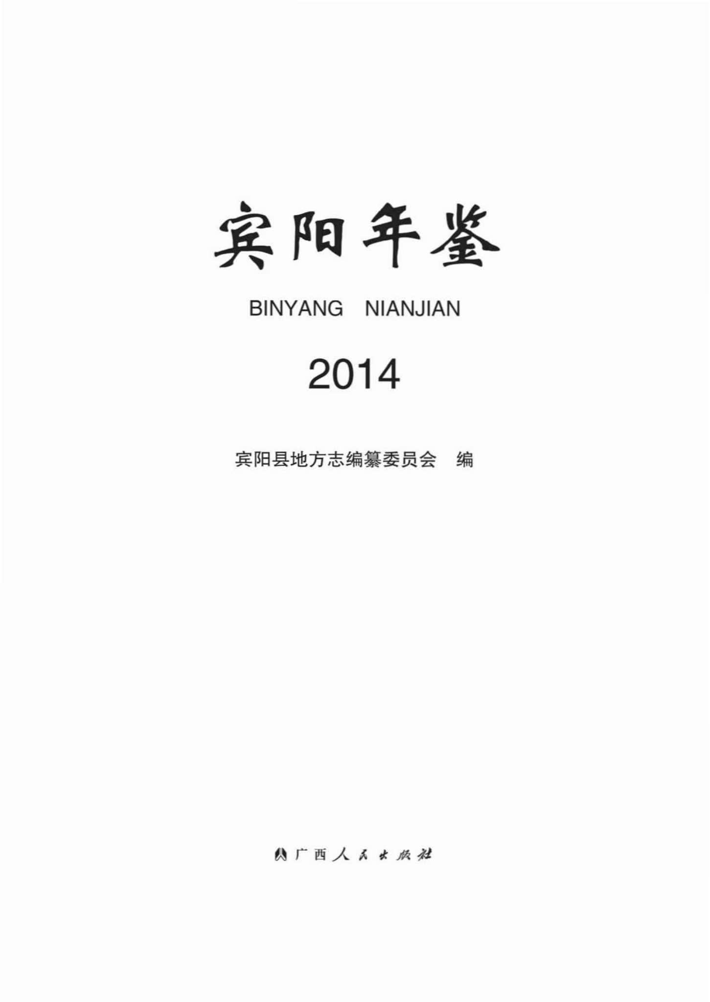 二、《宾阳年鉴》自 1986 年创刊后,每年续编出版一卷。《宾阳年鉴》2014年卷记载 2013 年度宾阳县的基本情况。图片专辑、专文、特载、附录等记述反映的内容不受年度限制。